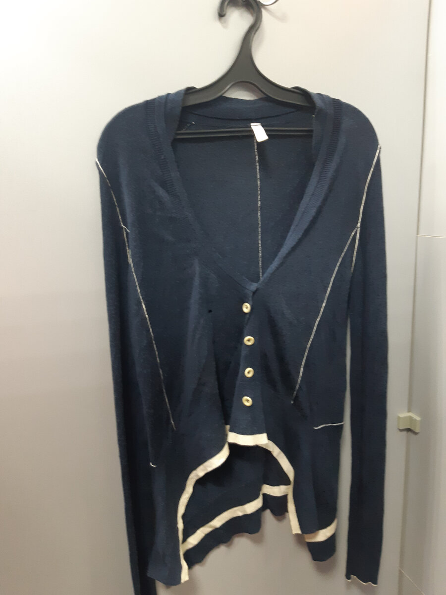 В кофточку влюбилась. В одного ее конечно не наденешь, слишком открытая, но какая она интересная! Бренд в обычных магазинах так скажем "дороговат", а вот в сэконде самое оно. Она очень интересная, немного в морские мотивы. 480р. Обычный вискозно-льняной свитерок от немецкой фирмыа Hepburn, . Подкупает неизбитым коралловым цветом и очень приятным тактильно трикотажем. 510р. Остатки роскоши от Marc O Polo из мериносовой шерсти темно-темно синего цвета. Качество шерсти отменное, и сам свитер очень неплохой, 480р. Попалась кофточка из 100% кашемира небесно-голубого цвета, из Швейцарии, кашемир нежный нежный, но с пятнами очень похожими на невыводимые. 420р.