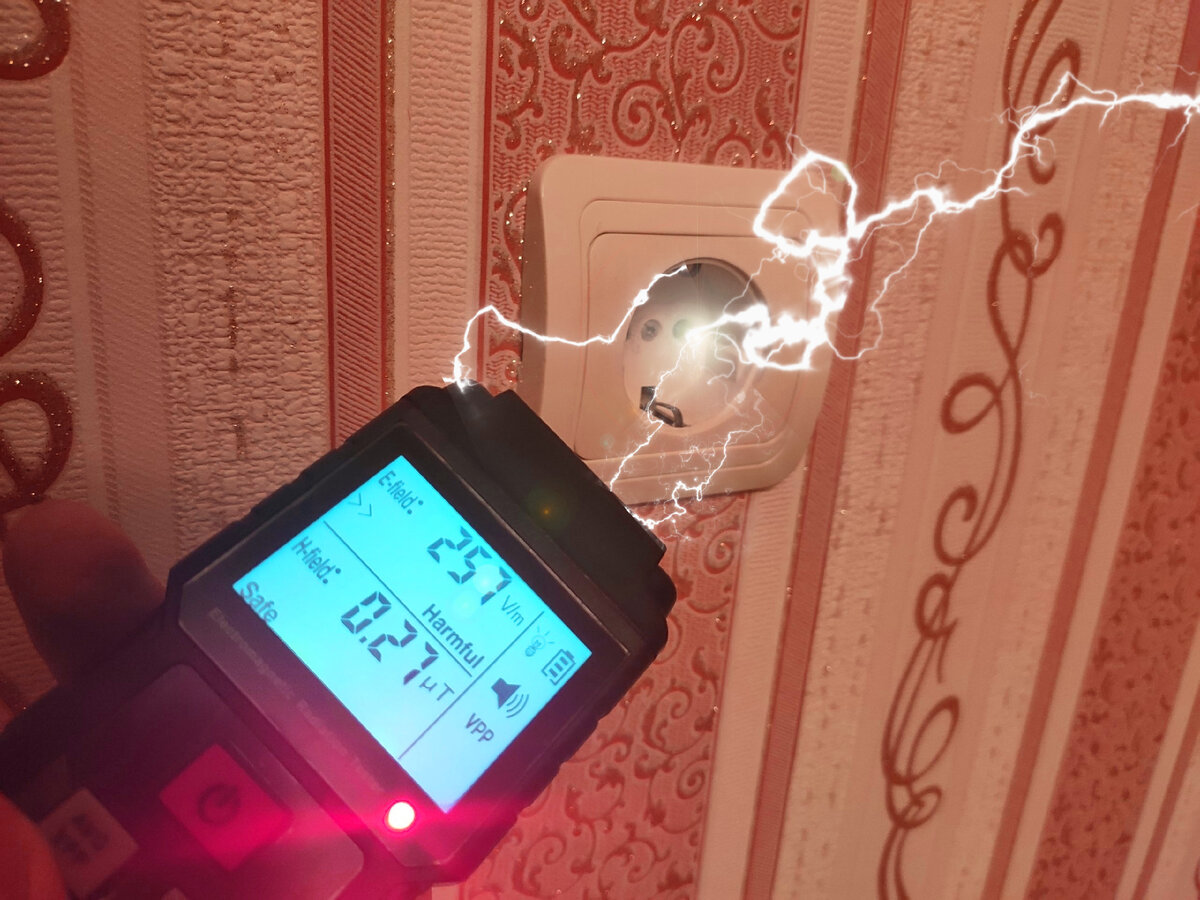 Если у вас плохой сон, беспокоит бессонница и к тому же болит голова непонятно от чего, возможно причина этому розетка рядом с вашей кроватью. От каждой розетки под напряжением исходит электромагнитное поле и сейчас мы узнаем на сколько оно велико и опасно. Сначала замерим силу поля вплотную от розетки. 187 V/m показывает силу электрического поля, что выше безопасного показателя (40 V/m) в 4,5 раза. Цифра в 0,40 μT показывает силу магнитного излучения (самое вредное) и здесь оно находиться на границе допустимого. Если поднять измеритель поля выше розетки, вдоль электропроводки в стене, идущей к розетке, мы увидим, что электрическое поле усилилось, а магнитное немного снизилось. Так какое расстояние от розетки можно считать безопасным? В разных квартирах сила электромагнитного поля может отличаться, что связанно с материалом из которой сделана стена и глубины расположения электропроводки. В моем случае, граница безопасной зоны начинается в 13 сантиметрах от стены: электрическое поле мен