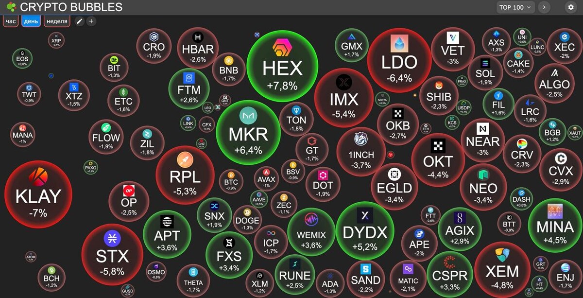 Bitcoin - стоимость 23 479 $, изменение за день -1% Ethereum - стоимость 1 647 $, изменение за день -0,3% BNB - стоимость 299 $, изменение за день -1,8% XRP - стоимость 0,379 $, изменение за день -0,6% Polkadot - стоимость 6,41 $, изменение за день -2,1% Капитализация рынка - 1.074 млрд$ Индекс страха и жадности - 51 (нейтрально)