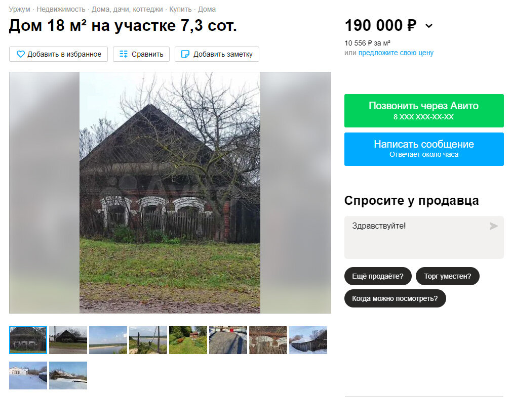 Здравствуйте, дорогие читатели «Вятского Хутора» − небольшого блога о восстановлении старинного крестьянского дома 1906 года постройки и жизни в нём! Буквально недавно я рассказывал на его страничках про поездку в лесной посёлок, что раскинулся за Вяткой. Когда мы вернулись на своё берег нашей главной реки, заехали в село Цепочкино. О нём я также упоминал в той публикации. Но то, что там продаётся старинный каменный дом с земельным участком, я решил выделить в отдельный материал. Об этом я узнал, прогуливаясь по просторам сайта электронных объявлений. Площадь 18 кв. метров, участок 7,3 сотки. Правда, в описании продавец указал, что дом не жилой и вообще, его лучше бы снести. Однако документы существуют. Всё это хозяйство оценено в 190 тысяч рублей. К сожалению, фото неинформативные и по ним складывается впечатление, что строение в весьма хорошем состоянии. Как раз его решили глянуть по пути в город и к себе в деревню. Заезжаем в село, паркуемся около магазина. Идти совсем близко. Сел