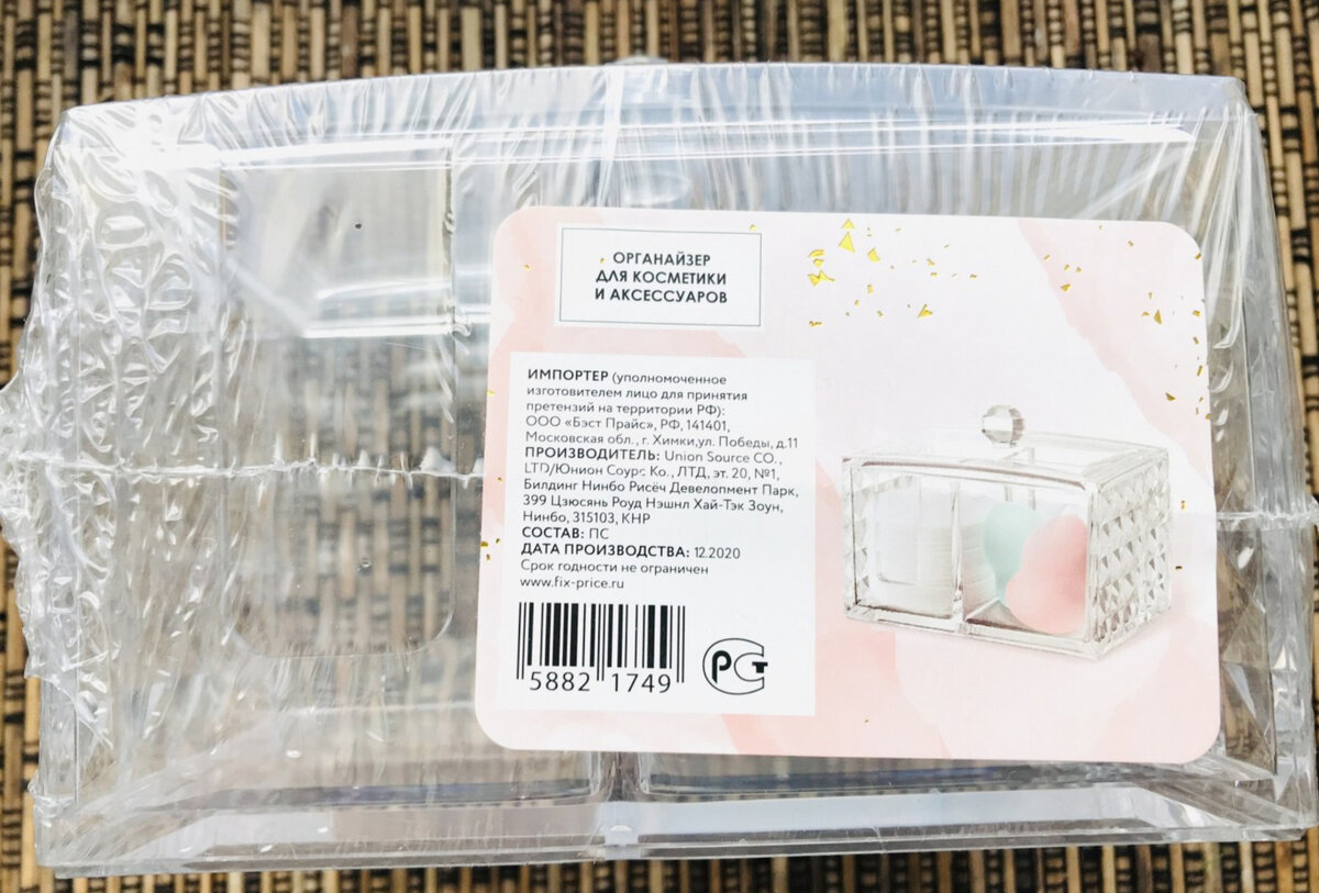 Плюс органайзер имел этикетку с основной информацией о продукте