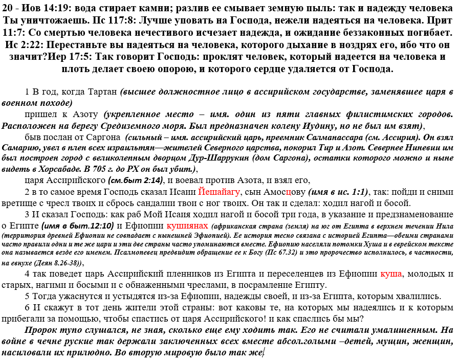 Писание. Разбор Библии. Слово, которое тебе пригодится сегодня - книга пророка Исаии, 20 глава