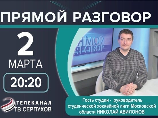 На телеканале «ОТВ Серпухов» 2 марта выйдет очередной выпуск программы «Прямой разговор». Гостем студии станет основатель и руководитель студенческой хоккейной лиги Московской области Николай Авилонов. Телезрители узнают о возможности для студентов, которые дает лига: окунуться в атмосферу большого хоккея, выйти на новый уровень мастерства и иметь шанс оказаться на льду рядом с именитыми игроками. Начало в 20.20. Не пропустите! Автор: Мария Малинина