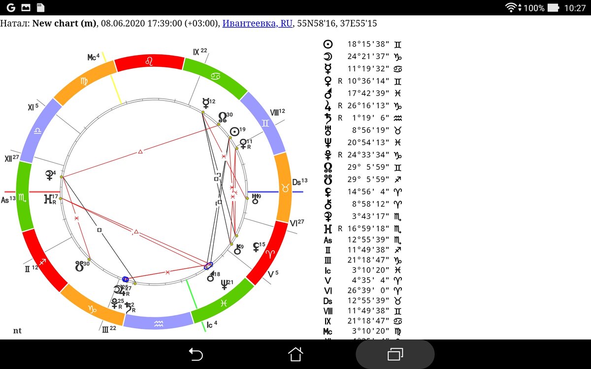 Размышляя в предыдущей статье об отношении к астрологии разных категорий людей, я придумала следущий афоризм: "Если ты не можешь хватать звёзды с неба, то хотя бы попробуй подружиться с ними". Нашла более ранний вопрос о здоровье одного знакомого. Этот знакомый будет обозначен сигнификатором 7 дома - Венерой. Венера очень ослаблена, она ретроградная и в Близнацах у неё нет достоинств. Надо бы посмотреть 6 дом для этого знакомого, дом его болезни. Это 12 дом, его управитель тоже Венера. Венера является и Альмутеном 27°градуса Весов. Так что и Управитель его болезни - это та же самая Венера, то есть он сам. Очень даже похоже. Этот человек ведёт разрушительный для его здоровья образ жизни: пьёт - это точно. Кажется, по этой карте больше нечего сказать, нет никаких аспектов. Но Через 5 единиц времени (5 градусов) Венера будет в оппозиции с Антисом Юпитера - управителя его 8 дома. Смерти по Антисам не бывает, была лишь операция через 5 месяцев, в октябре. Венера в мутабельном знаке, време