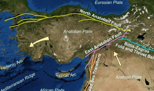 Карта тектонических разломов в Турции