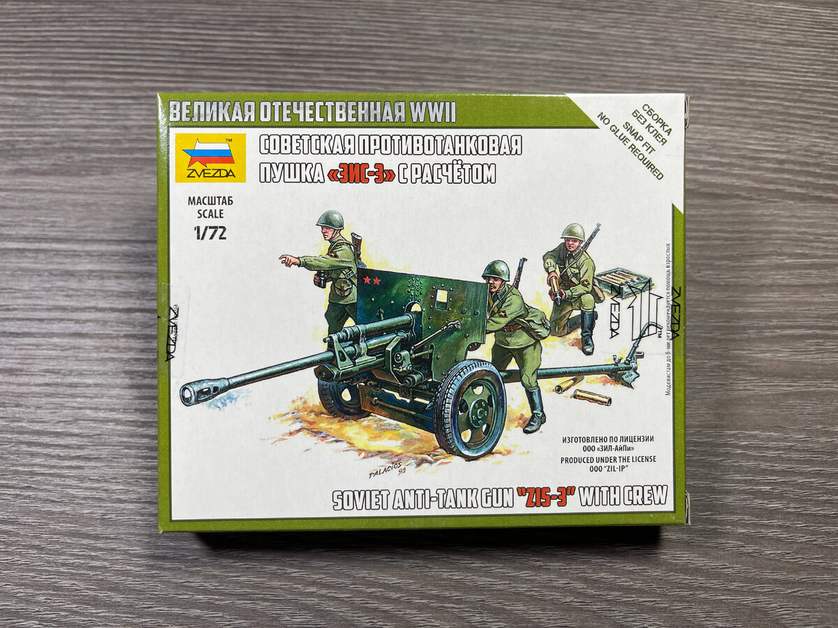 Маленький набор в 72 масштабе, всеми известной пушки ЗИС-3. Краткая справка 76-мм дивизионная пушка образца 1942 года ( ЗиС-3 , Индекс ГРАУ — 52-П-354У ) — 76,2-мм советская дивизионная и противотанковая пушка. ЗиС-3 стала самым массовым советским артиллерийским орудием, выпускавшимся в годы Великой Отечественной войны. Благодаря ее выдающимся боевым, эксплуатационным и технологическим качествам очень многие специалисты признают орудие одним из лучших орудий Второй мировой войны. В послевоенное время ЗиС-3 долго состояла на вооружении Советской Армии , а также активно экспортировалась в ряд стран, в некоторых из которых она находилась на вооружении и на 2016 год, и, вероятно, на вооружении и в настоящее время. О наборе Новая разработка компаний в 2015 году в таком масштабе. Изменения были только коробки. Общая информация Производитель - Zvezda Артикул - 6253 Масштаб - 1/72 Деталей - 132 шт Размер - 8,6 см Миниатюра - да Фототравление - нет Доп. элементы - подставка Рекомендуемая краск
