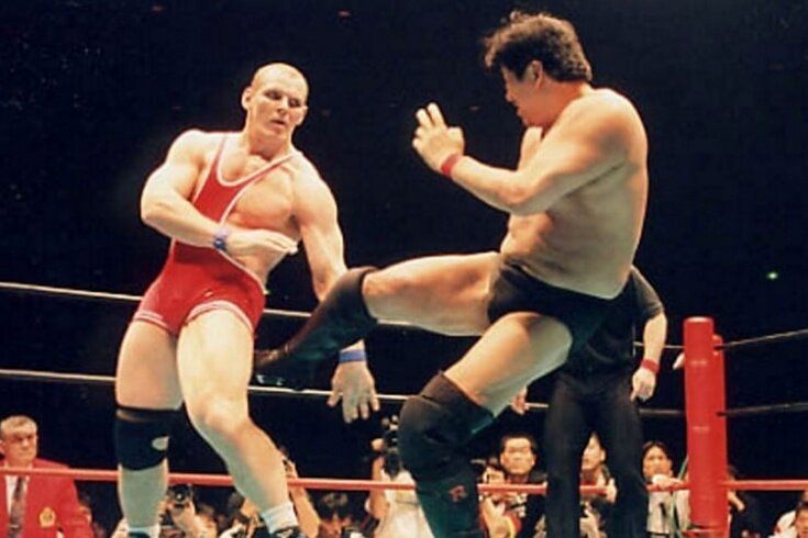 У Карелина вообще талант, всегда быть на плаву. Он входил в нужные партии, говорил нужные слова и выходил с нужными инициативами. Как спортсмен он достоин искреннего уважения, личность великая, но проблема нашей руководящей элиты, что в ней много случайных людей на всех уровнях. И спортсменам там точно не место, какими бы они не были талантливыми в своей сфере. Вспоминается сразу Хоркина и Исимбаева. Так что же Карелин? А он у нас ярый борец с ММА. По его словам, он не уважает ни этот спорт, ни его поклонников. Интересно, античный Панкратион, ставшим прообразом для ММА он тоже презирает? Вот только как же такой поборник морали, противник «кровавых зрелищ» и дрался за деньги в пародии на ММА. Да, именно пародии, так как в Японии есть две организации, внешне очень схожие. В первой, действительно, велись полноконтактные бои, в которых дрались такие титаны как Рутен и Шемрок, где часто случались нокауты, бои были жесткими. Но правила странными, там то кулаком запрещали бить, то останавлива