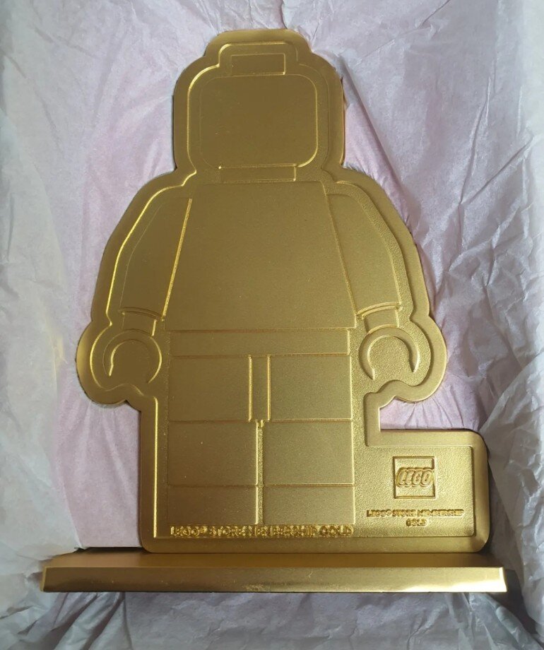 Я уже несколько раз писал о специальных сувенирах, которые можно получить участникам программы лояльности южнокорейской сети LEGO Store. И вот один из таковых недавно стал достоянием любопытствующей общественности. Металлическая статуэтка в виде минифигурки - выполнена по обыкновению из цинка. Вероятно мы увидим несколько иных сувениров, выполненных из акрила в том числе Основа этой статуэтки выполнена основательно. Высота 18 сантиметров. Доступна обладателям статуса Gold Membership в 2023 году. При появлении новых сувениров программы, сообщу о них оперативно