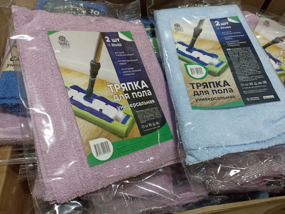 Универсальная тряпка для мытья полов из 2 штук разных цветов, размером 50/60 см. Цена 100 рублей.