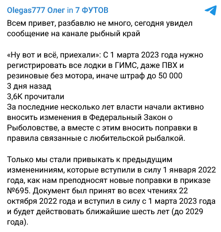 С 1 марта 2023 года вступят в силу изменения в правила пользования маломерными судами — такая информация распространяется в мессенджерах. Якобы появились новый юридические тонкости, которые необходимо знать рыболовам. На самом деле сейчас действует приказ МЧС России от 06.07.2020 №487 «Об утверждении правил пользования маломерными судами на водных объектах Российской Федерации», последние изменениями в который были внесены 1 января 2021 года.