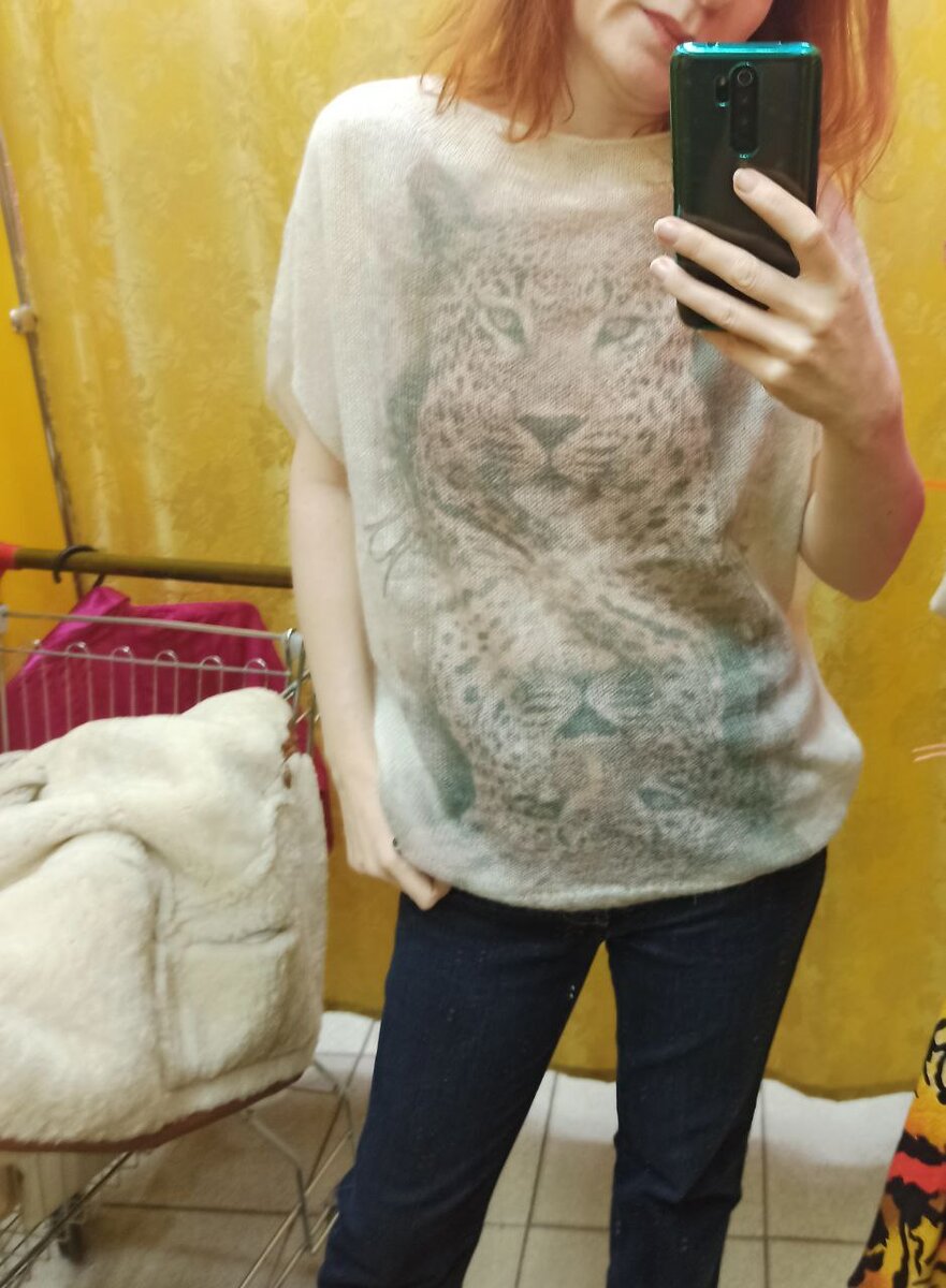 Розовая майка с принтом, фуксия. Хлопок. Ее мерила все три дня и так и не взяла....без коментариев😆😆😆Затем жилет из мохера, с леопардом. Состава нет, но мохер точно есть ...с ним та же история ,что и с розовой кофточкой🙈🙈🙈, мерила-мерила и не купила. Кстати с розовой очень хоршо смотрится Олимпийка от Nike. Фуксия. Худи розовое, маловато Олимпийка от E. Armani. Состояние среднее, видела ее на скидках. И по моему ее все же купили. Меня смутил ее пошив. Скорее всего Турция . Хотела дочке взять, но она отказалась в очередной раз Рубашка трикотажная , интересной расцветки Жилет кожаный, черный. Он