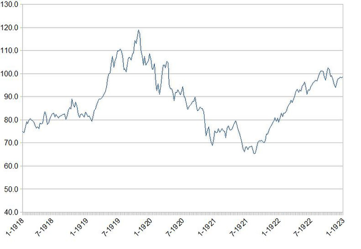КРАТКО: Депрессия 1920–1921 годов была резкой дефляционной рецессией в США, Великобритании и других странах, начавшейся через 14 месяцев после окончания Первой мировой войны. Она продолжалась с января 1920 г. по июль 1921 г. Степень дефляции была не только велика, но и велика по сравнению с сопутствующим падением реального продукта. 1920-21 го это резкий дифляционный спад в США и Соедененном Королевстве.После 1 мировой войны произошел 2 х летний экономический спад.Произошел всплеск наплыва миллиона ветеранов после войны.Как понятно из этого числа,что с работой и пенсией возникла проблема.Рост безработицы,как говорит Ромер возросла с 5,2% до 8,7% ,а более ранняя оценка была от его коллеги с 5,2% до 11,7%. С 1920 по июнь 1921 сократилось очень сильно производство на целых 60% ,а общее производство на 30%. Доу-Джонс 3 ноября 1919 года был 119,6 пунктов , 24 августа 1921 года 63 и 9 пунктов (ПОСЧИТАЙТЕ и напишите в комментарии на сколько % составил обвал мощного индекса всего времени) КТО