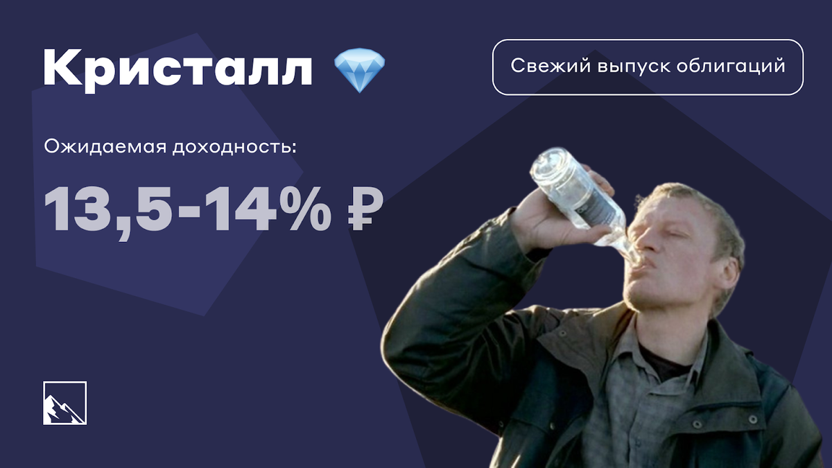 Не Белугой единой питаются инвесторы. В полку ликёро-водочных ценных бумаг пополнение, и на этот раз топить горе предлагается в стакане под доходность до 14% годовых. Небезызвестный всем (надеюсь, что на самом деле не всем) Калужский ликёро-водочный завод Кристалл выходит на биржу с дебютным выпуском облигаций. Этот выпуск можно смело относить к ВДО и за счёт доходности выше ОФЗ на 5,5%, и за счёт рейтинга ruB+, который присвоил Эксперт РА. И не стоит путать калужский Кристалл с московским. Московсий делает Путинку, а калужский — хипстерскую Бионику. Объём выпуска — 300 млн рублей, доходность до 13,5%–14%, срок 3 года, без оферты, но с амортизацией. А главное — продукция завода, которая пользуется спросом тем сильнее, чем тяжелее жизнь в России. КЛВЗ «Кристалл» — производитель ликеро-водочной продукции, а конкретно водки. Предприятие расположено в Обнинске Калужской области, совокупная мощность производства составляет 120 млн бутылок водчелы в год. 95% продукции — это водяра, а 5% — вс
