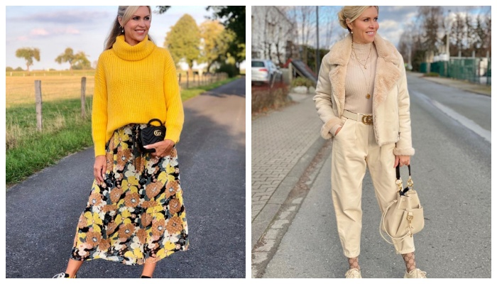 В данной статье вы узнаете, как, без особого труда, выглядеть модно и современно в зрелом возрасте. Не бойтесь носить модные кожаные вещи ярких или же базовых оттенков. Перед вами аутфит с брюками из цветной кожи, принтованной блузкой и нюдовыми туфлями-лодочками. Смотрится такое сочетание дорого и эффектно. Миди кожаную юбку-карандаш, например, взрослые дамы могу обыграть однотонным трикотажным лонгсливом, минималистичным пальто, белоснежными остроносыми сапогами на каблуке «рюмочка», а также комбинированным клатчем с контрастными вставками. Добавьте в свои повседневные аутфиты черных и белых вещей. Стилисты советуют на постоянной основе примерять классические брюки, пальто, тренчи, не забывайте про оверсайз рубашки, они отлично стройнят фигуру и добавляют образам особенного лоска и благородства. Бело-бежевые наряды визуально освежают внешность и делают ее максимально привлекательной и современной. Гуру моды рекомендуют дамам за 50 чаще составлять монохромные светлые аутфиты на кажды