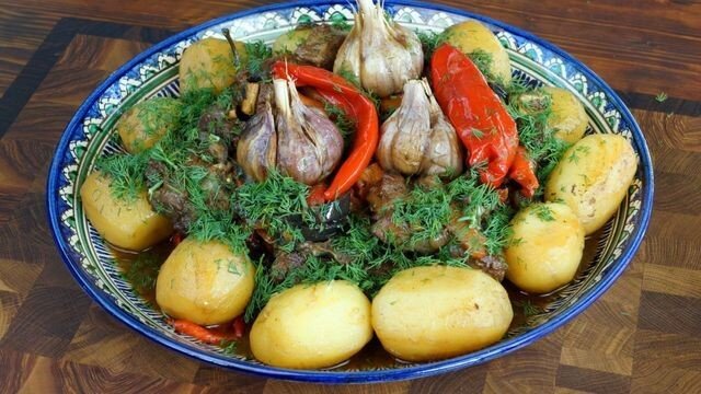 Что такое ДЫМЛЯМА? Название это происходит от узбекского ДУМЛЯШ – запарить, дать попариться. Поэтому получается, что правильнее будет ДУМЛЯМА. Дымляма — традиционное очень вкусное блюдо узбекской кухни. Дымляма представляет собой смесь особым образом потушенных овощей. Ингридиенты: Мясо - 600 -700 г Лук репчатый - 500 гр Морковь - 4 -5 шт Помидор - 2 -3 шт Капуста (целые листы) - 3 -4 шт Перец Баклажан Овощи (любые другие) Масло растительное Чеснок Способ приготовления: - Нарезать мясо большими кусками, лук полукольцами крупными, перец квадратиками большими, морковь кольцами шириной 1 см, капусту порезать на несколько больших частей, картофель разрезать напополам, чеснок разрезать на пластины. - Разогреть масло в казане, добавить мясо и пожарить минут 15 на высоком огне, положим все остальное слоями, лук, потом перец ,немного соли , чеснок и лавровый лист, морковь, картофель, и капусту, и зиру, и еще раз немного соли. И тушим 40 минут. - После кладем помидоры в собственном с