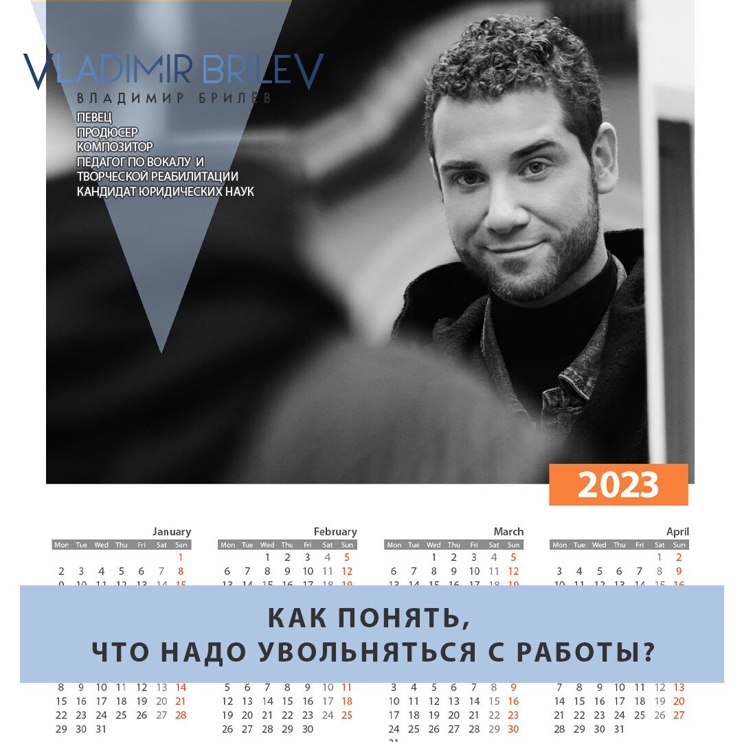 Вопрос: Владимир, как понять, что надо увольняться с работы? Ответ: Когда всё становится серым, неинтересным. Тебе обрыдло это место, хочется что-то поменять в своей жизни. Нужно просто это делать - брать и менять. Потому, что это рутина: два года пролетает, три года, четыре...Вот так иногда, согласитесь, ты оглядываешься и думаешь - да я тут уже девять лет работаю! Я тут застрял. Нафига я тут нахожусь? Надо брать и валить. Валить в другое место. Может, в этой же профессии, может, в другую. Вообще поменять сферу деятельности, а то быстрая река однажды может превратиться в озеро, а озеро - в болото. Вот так же может произойти с вашим рабочим ( и жизненным) временем. Зачем?