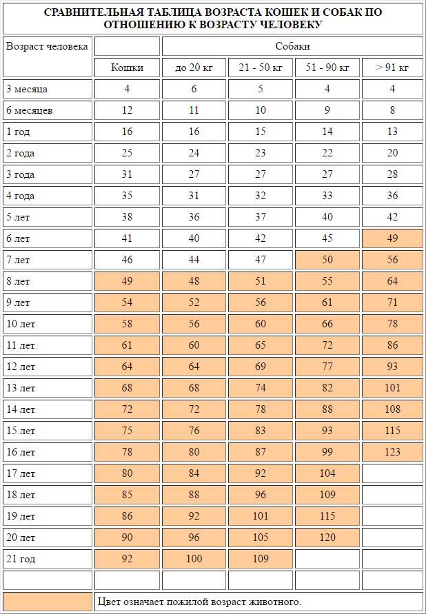 Сравнительная таблица возраста кошек и собак по человеческим меркам Возраст собаки, в первую очередь, определяется по состоянию зубов и количеству седых волос на голове. Понятно, что по внешнему виду однозначно определить возраст достаточно сложно. Точно так же, зная сколько лет собаке, мы не можем однозначно определить возраст собаки в пересчете на человеческие года. Зато мы точно можем сориентироваться к какой возрастной группе, по человеческим меркам, ее отнести.