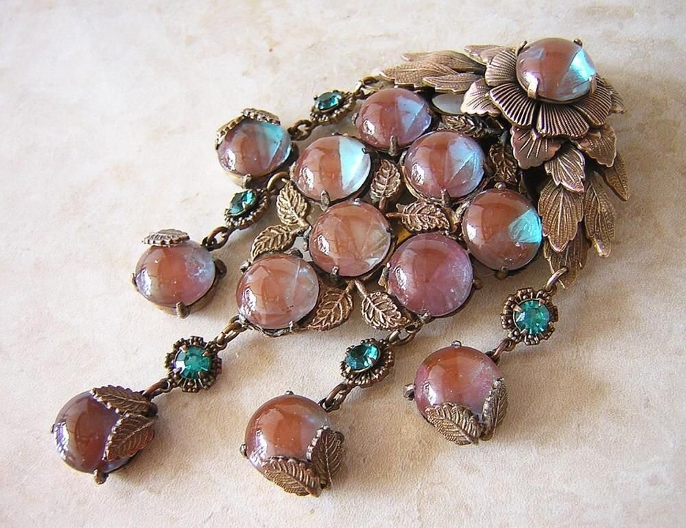 В местах продажи антиквариата встречается бижутерия, цена которой кажется заоблачной по сравнению с соседними по витрине аналогичными украшениями. Часто всего одно стеклышко в брошке делает ее безумно дорогой, дороже ювелирного украшения. Например, если это стеклышко – так называемый сапфирит. Это тип двуцветного стекла, впервые созданного в конце 19 века в чешском городе Яблонец-над-Нисоу (а тогда это была часть Германии, Богемия). Яблонец и сейчас является известным местом изготовления художественного стекла, а двести лет назад это был один из крупнейших мировых центров стекольной промышленности с хорошей научной и опытной базой. Стекло было изготовлено по тщательно охраняемому рецепту, который включал добавление золота в стеклянную смесь, что создавало уникальный эффект переливчатого цвета. Базовый цвет серо-голубой, и на нем при изменении угла зрения проявляются отблески с красноватым или золотистым оттенком. Материал был назван сапфиритом, и он был не похож ни на один другой сорт