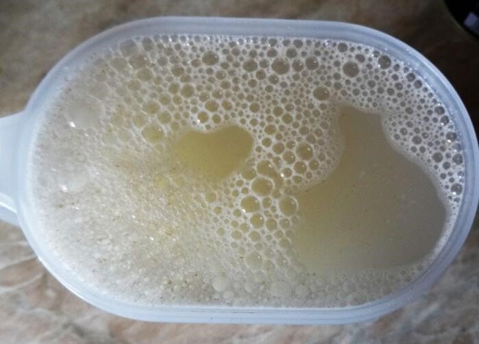 Здравствуйте, мои дорогие! Сегодня хочу вам напомнить рецепт очень простого постного молока. Делается оно из овсяных хлопьев, овсяное молоко, то есть. По вкусу оно для меня приятное, но не скажу, что понравится всем, всё-таки на любителя. Но это молоко полезное, к тому же подходит тем, кто не переносит молоко обычное. Можно купить в магазине, сейчас выбор широкий, но приготовить самим просто и по цене выгоднее во много раз. Надо для овсяного молока всего три ингредиента: У всех же это дома есть? Значит и молоко овсяное, при желании, можем "надоить". Приготовление: Пусть стоит двенадцать часов. Не в холодильнике, просто на кухне. Сначала было так. За половину суток хлопья разбухли, увеличились в размере. И хлопья, и воду, переливаем в блендер и взбиваем. В принципе, это уже готовый напиток. Но сделаем еще шаг - процедим через сито от остатка хлопьев. И вот уже получили овсяное молоко в домашних условиях. Овсяную кашицу можно выбросить или куда использовать, хоть в блины. Молоко перелив