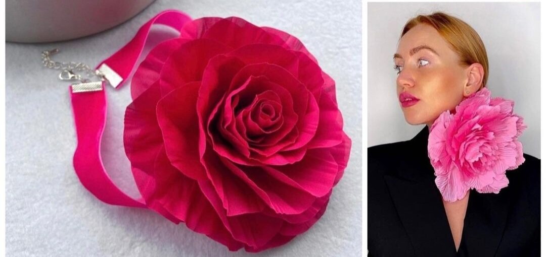 Как же это красиво и женственно! На звездах тоже часто вижу в их образах обьемные цветы в виде брошей. Согласитесь, они придадут женственности любому костюму. Массмаркеты подхватили эту идею и предлагают много вариантов. Но не была бы я рукодельницей, если бы не захотела сделать его сама! Скоро выйдет мое видео как сделать брошь цветок из материала, который можно крепить как на чокер, так и в виде броши. Подписывайтесь и не пропустите!