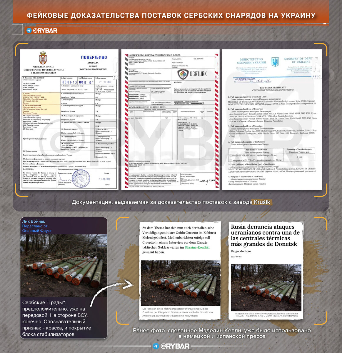 ▪️ В ролике фигурировала документация, cогласно которой боеприпасы были изготовлены на сербском оборонном предприятии Krušik, а затем через cклад в Словакии попали на украинскую территорию.