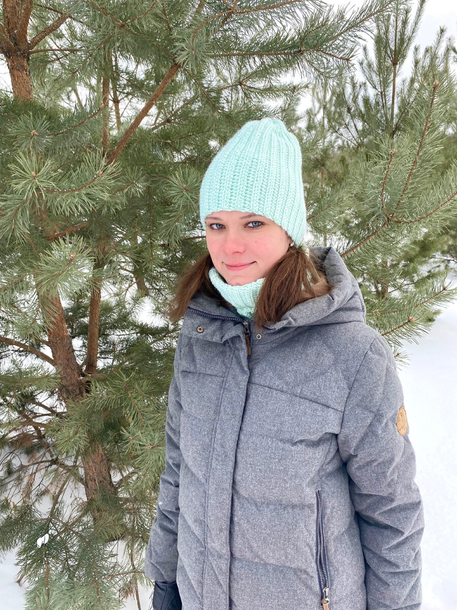 Раньше я всегда выбирала комплекты белого или серого цвета без принтов. Считаю, что эти цвета идеально подойдут к любой верхней одежде. Но в этом году я сделала исключение и решила связать для себя комплект цвета светлая мята, под серый пуховик. Так я стала выглядеть более выразительней, ярче. Буду менять свои стереотипы и на весну свяжу новый комплект. Ищу пряжу горчичного цвета. Какой цвет выбираете вы для комплекта шапка и снуд?
