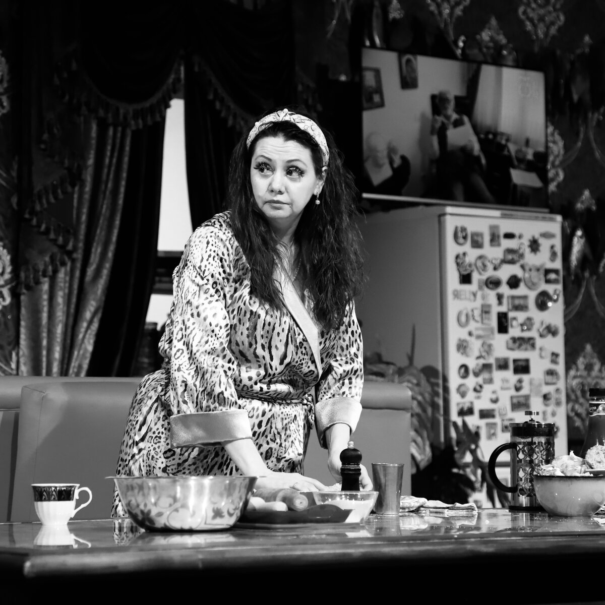 Мы будем во время спектакля в реальном времени готовить еду. Блины печь, тесто месить, готовить пельмени и не только, я уже говорил об этом ранее. Потом будем есть все то, что будем готовить. Общее действие укладывается в такую простую последовательность: завтрак, обед, ужин...мы насыщаем пространство соответствующими бытовыми подробностями: закваски, овощи с огорода в мешках, развешенная рыба вдоль комнаты. Как бы деревенский погреб внутри современной квартиры с евроремонтом из конца 90-х - начала 00-х: все дорого, богато, обои с барочными орнаментами, красный кожаный диван и т.п. Но самое главное, это, конечно, стол, а точнее то, что на нем - традиционные, любимые всеми блюда: блины, пельмени, макароны с кетчупом и хреновухой и не только!