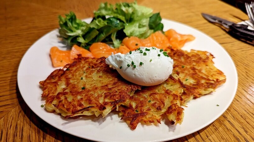 Драник моей мечты, поджарен до внешнего хруста, а внутри пропечен картошечным слоем и очень нежен.