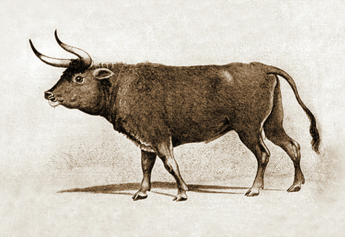 Тур был диким быком, который бродил по лесам и лугам Европы. Это был один из самых крупных травоядных на континенте, его рост превышал 1.8 метров в холке, а вес достигал 1 тонны. Средневековые европейцы активно охотились на них ради мяса и шкур, поэтому их популяция быстро сокращалась. Последний известный Тур умер в Польше в 1627 году, что ознаменовало вымирание этого культового вида.