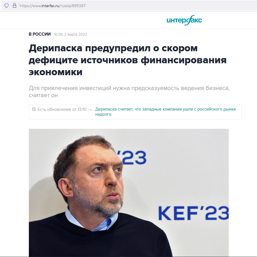 Одним словом, пока прогноз Дерипаски насчет денежных проблем в 2024-м выглядит тревожно достоверным.