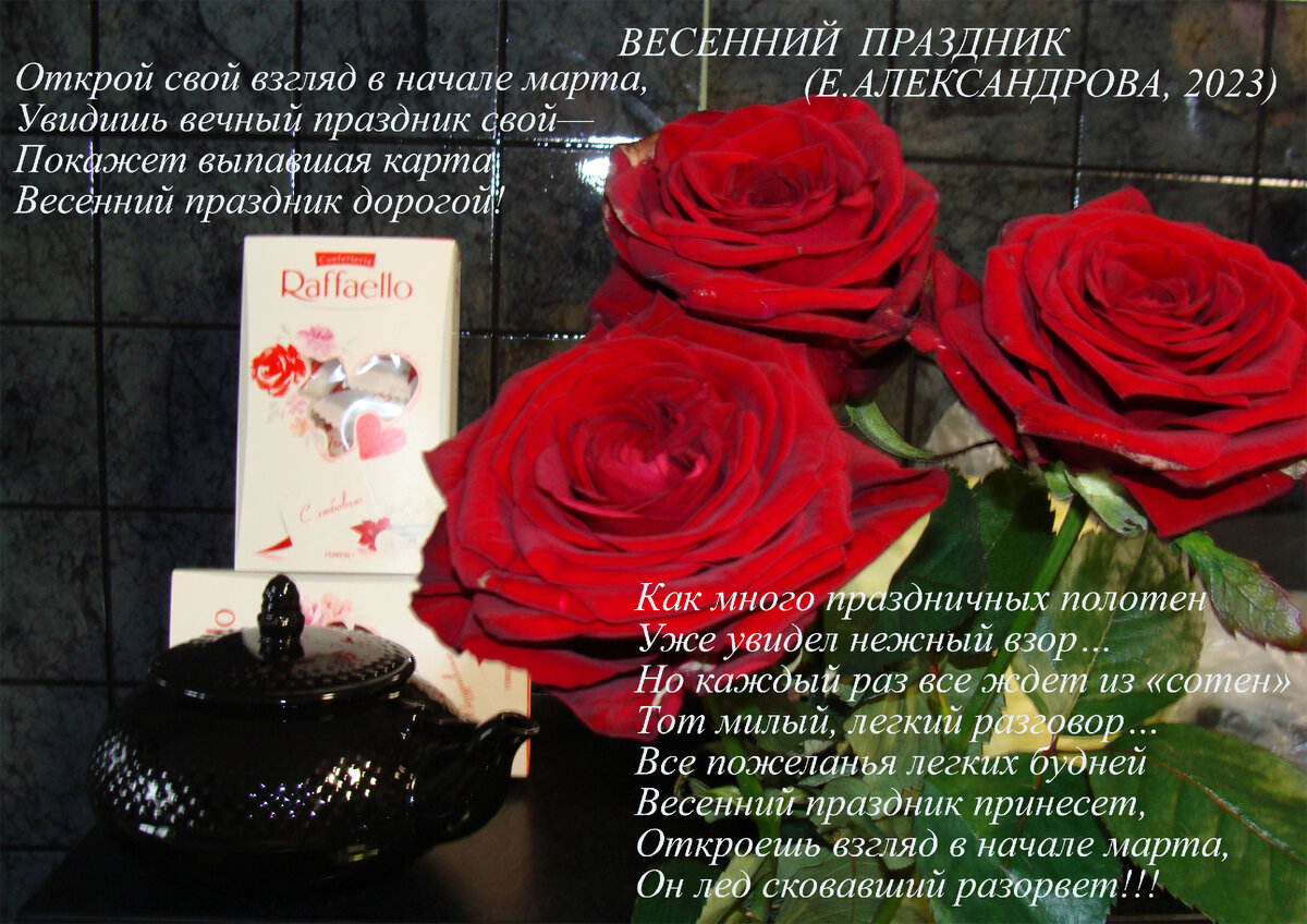Раскрыв объятия, невзначай, подарим розовый букет, Нальем по кружкам сладкий чай, споем для милой мы куплет.... А если радостью закружат все поздравления в тиши, Тогда без всякого сомненья, на сайте нашем напиши...