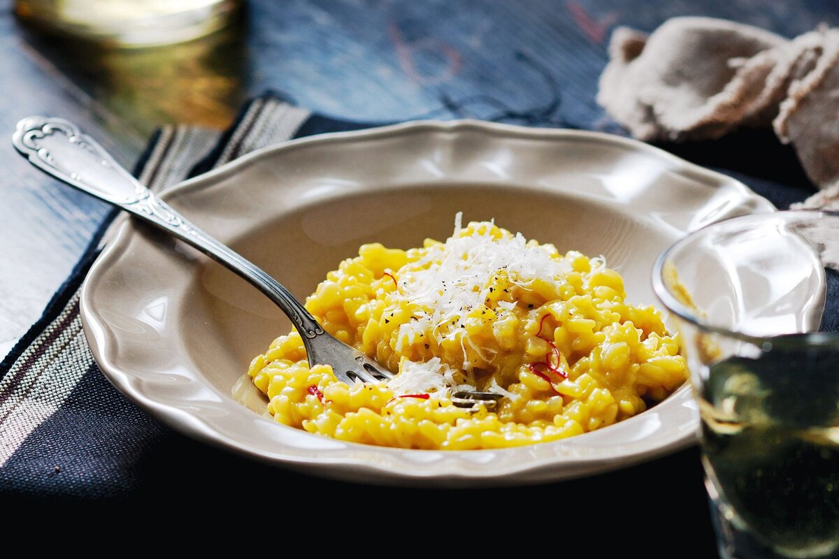 Классический ризотто по милански - это традиционное итальянское блюдо, которое готовится с использованием арборио риса, куриного бульона, сафрана и других ингредиентов. Вот рецепт для приготовления ризотто по милански:
