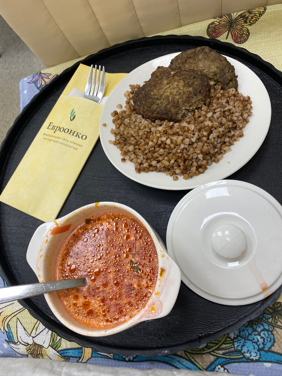 Второй день начался с завтрака аля привет бесплатная больничка-масло, сыр, хлеб и каша. Без вкуса. Я плюнула и заказала бутеров в ленте(огонь, которые york fresh). И маме хороший кофеек. И началось…в палату ломился народ, а именно врачи. От главного до специалистов. Итого сделано: взято 8 пробирок крови, узи бп, узи почек, узи мочевого, поменян диализный катетер, сняли экг, сделали рентген, допплер, приходили зав отделением, главный, невролог, психолог, анестезиолог. А сейчас я загораю на диализе. Итого имеем из проблем: мочевой и кишечник с желудком. Предстоит гастро и колоно под наркозом. Я пообедала только в 16. Но зато вкусно довольно. Хоть и опять столовка. За кадром еще огуречный салат и морс. Морс и оладушки огонь, ладно.) Потом как-то быстро произошел полдник. Сок топовый, томатный обожаю! Остальное оставили с мамой, и так нормально было. А на ужин свиная котлета и овощи( кабачок, морковь, лук, перец) тушеные. Я не ела-свинину не употребляю, поела зато овощи кроме перца. Но