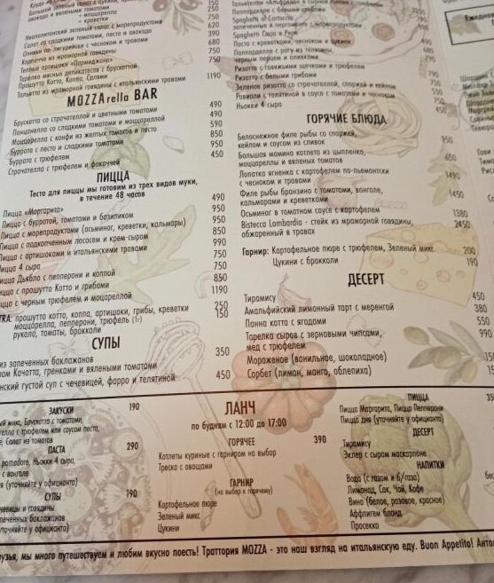 Ну что ж, интерьер ресторана красочный, играет итальянская музыка. Меню из 90% состоит из страчателлы, томатов, песто, оливок, моцареллы - так, что, если вы всего этого не едите, то вам не стоит сюда идти) Мы кушали пиццу с подкопченным лососем и крем-сыром, тесто тонкое, хрустящее, сочетание лосося и рукколы очень хорошее. На столе было острое оливкое масло, можно при желании сбрызнуть им пиццу, будет ещё вкуснее. Еще была брускетта с артишоками и вялеными томатами, хлеб поджаренный, очень хорошо подходит к бокалу игристого) Так же был суп с чечевицой, фарро и телятиной, довольно таки вкусный, чувствуется присутствие чеснока. Из напитков был лимонад с базиликом- это очень великолепно , базилик придает напитку интересный вкус. И бокал игристого-тут ничего не скажешь, всё прекрасно и красиво. Обслуживание великолепное, официанты приветливые, в ресторане присутствует какой-то домашний уют) В целом нам всё понравилось, придем ещё, оценка 9/10.