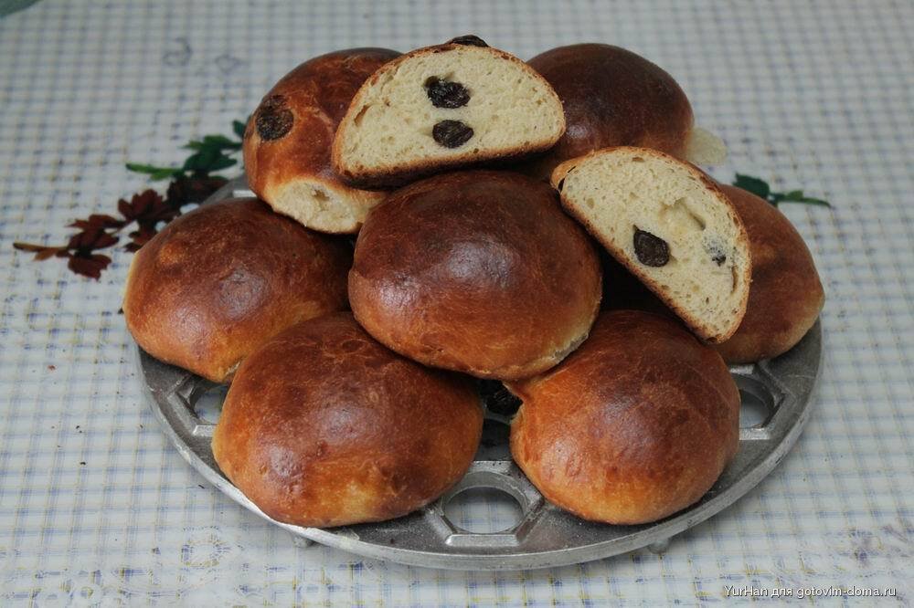 Думаю что старшее поколение отлично помнит "Булочку калорийную"!Ту самую с изюмом внутри, стоившую несколько копеек, завсегдатая школьных столовых и советских булочных.Так давайте ее приготовим! Сначала промоем изюм и оставим его сохнуть на бумажном полотенце. Соединяем в миске теплое молоко, сахар и сухие дрожжи.Даем постоять минут 10 - 15 до появления "шапочки".Разделяем в яйце белок и желток, смешиваем белок с растительным маслом и водой, и добавляем в дрожжевую смесь.Не забудьте добавить щепотку соли!!!!!Добавляем стакан муки и начинаем вымешивать тесто. Добавляем оставшуюся муку и вымешиваем тесто до тех пор, пока оно не перестанет липнуть к рукам.Кстати, когда я вымешиваю тесто, то руки слегка смазываю растительным маслом. Когда тесто становится упругим и перестает липнуть к рукам я добавляю в него изюм и хорошенько перемешиваю. Миску с тестом накрываем полиэтиленовым пакетом и отправляем подходить примерно на час в теплое место.А чтобы оно подошло быстрее я ставлю миску на пласт