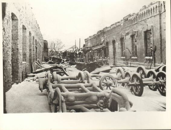 Здравствуйте, уважаемые подписчики и гости моего канала. Сегодня я продолжаю рассказывать историю Пятигорского трамвая. Это уже вторая часть, а название я подобрал не случайно. Как знают все граждане СНГ, в период 1941-1945 была Великая Отечественная война. Городским трамваем уже почти никто не пользовался, 9 августа 1942 года город был оккупирован немцами. Осада длилась полгода, ведь 11 января город отбили. Отступая, немцы бомбили депо, взрывали вагоны, увозили рельсы. Даже под конец разбомбили главный трансформатор в депо. Там же кстати, сохранились дырки в стене от нацистских пуль. После того, как отбили Пятигорск, депо выглядело так: Когда город отбили, трамвай хотели заменить на троллейбус. Настолько были велики разрушения, но работники сами, без оплаты стали восстанавливать хозяйство. В 1946 году трамвай достиг довоенного состояния. Но ветку на провал не стали восстанавливать. О главной причине я рассказывал в статье про провал. Это была авария. Но после войны встал вопрос о ваго