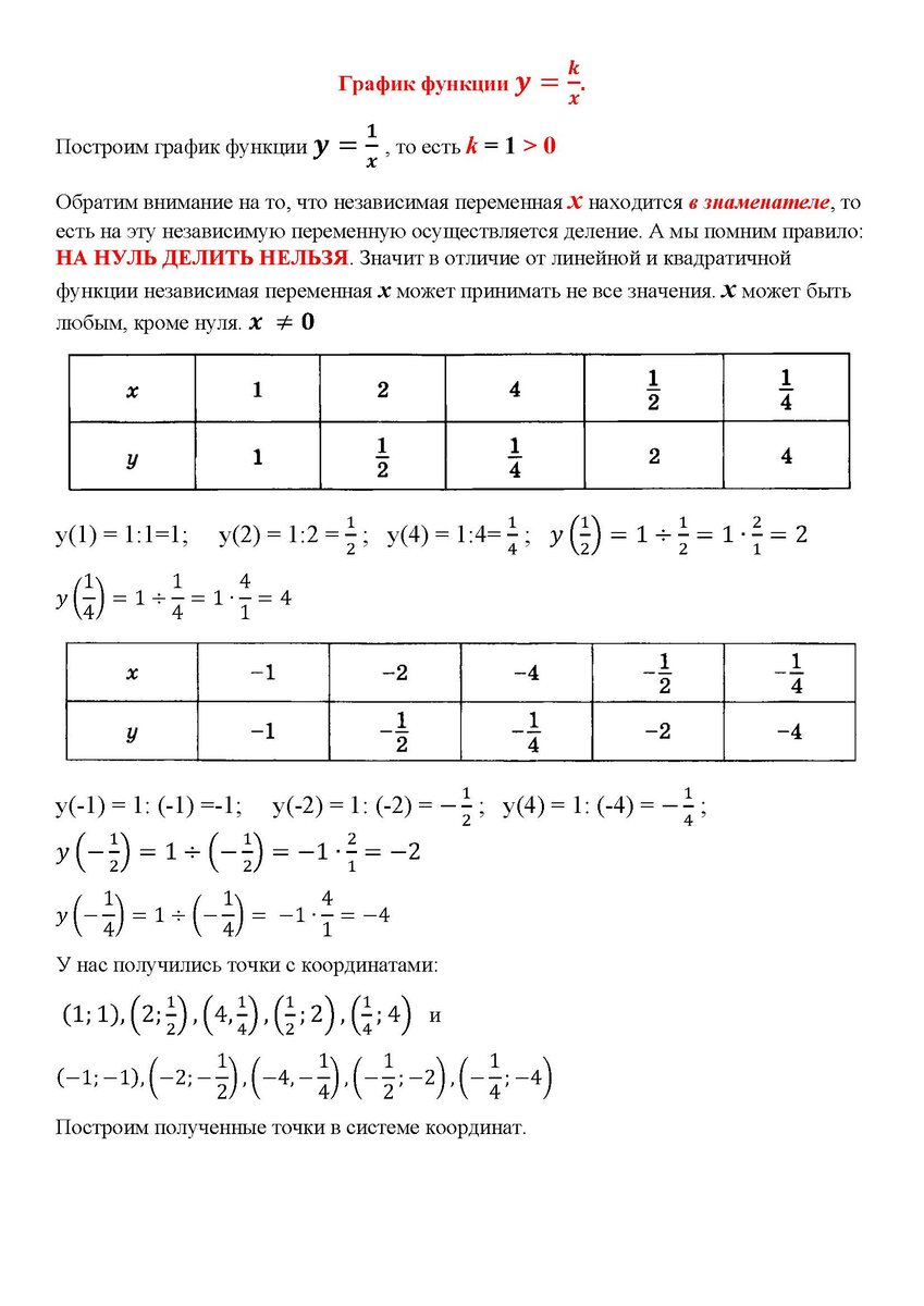 График функции обратной пропорциональности y = k/x