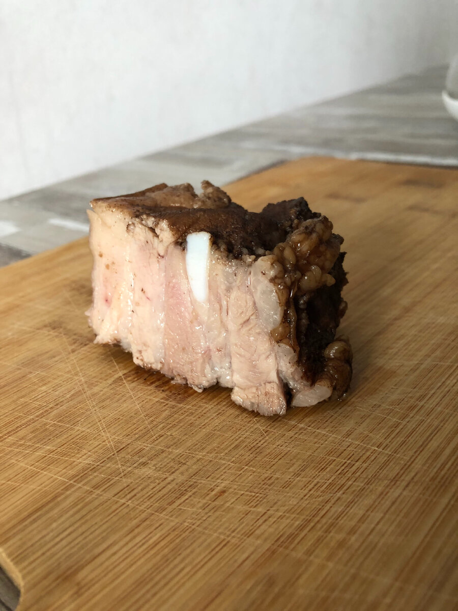 Понадобится соевый соус и сама грудинка и да это всееее, не соли, не сахара, не куча времени🤪 и так начнём, моем грудинку, положили в кастрюлю и залили соевым соусом, включили плиту доведи до кипения, повари час и все ✅🙊 наслаждайся😜