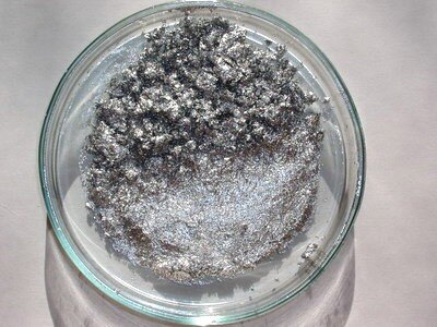 Несмотря на название этой краски, в ней не содержится ни грамма серебра. В действительности в ее составе есть лишь измельченная металлическая пыль. Которая получается при помоле алюминиевых отходов и непосредственно алюминия. Таким образом, это мелкодисперсный порошок алюминия, который придает материалу при покраске стальной цвет.