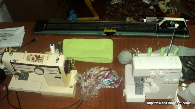 Всем привееееет!!!!!!!!!! Я как всегда все в одну кучу, хоть бы раз в месяц в блоге отмечаться, времени нет совсем. А когда начала фотки скидывать, смотрю, вроде бы что-то еще и делаю. Предупреждаю, как всегда МНОГО ФОТО))) Ну, поехали. Во первых, у меня появился большой стол. Правда, он у нас давно был, просто я его разложила, и стол занял пол комнаты А пофиг, зато на нем все поместилось, блин, а места все равно мало Видите, на столе лежит что-то желто-зеленое, это флисовые штаны, которые я перешила из "незнаюкакназватьчего",вот Здесь показывала Карманчик У малого в садике был "Праздник осени", пришлось срочно шить жилетку и брюки Штаны самые простые, без карманов и пояса, на резинке. Выкройку подсмотрела Тут. А с жилетом решила выпендриться, сделать подклад как фабричный Ох и намучилась с ним, зато я теперь проффи ))) Мастер-класс Здесь Галстук сын выбирал сам в Фиксе, когда еще фанател от "Ган гам стайла" С шитьем все, теперь вязание. Утилизация распущенных вещей продолжается, м
