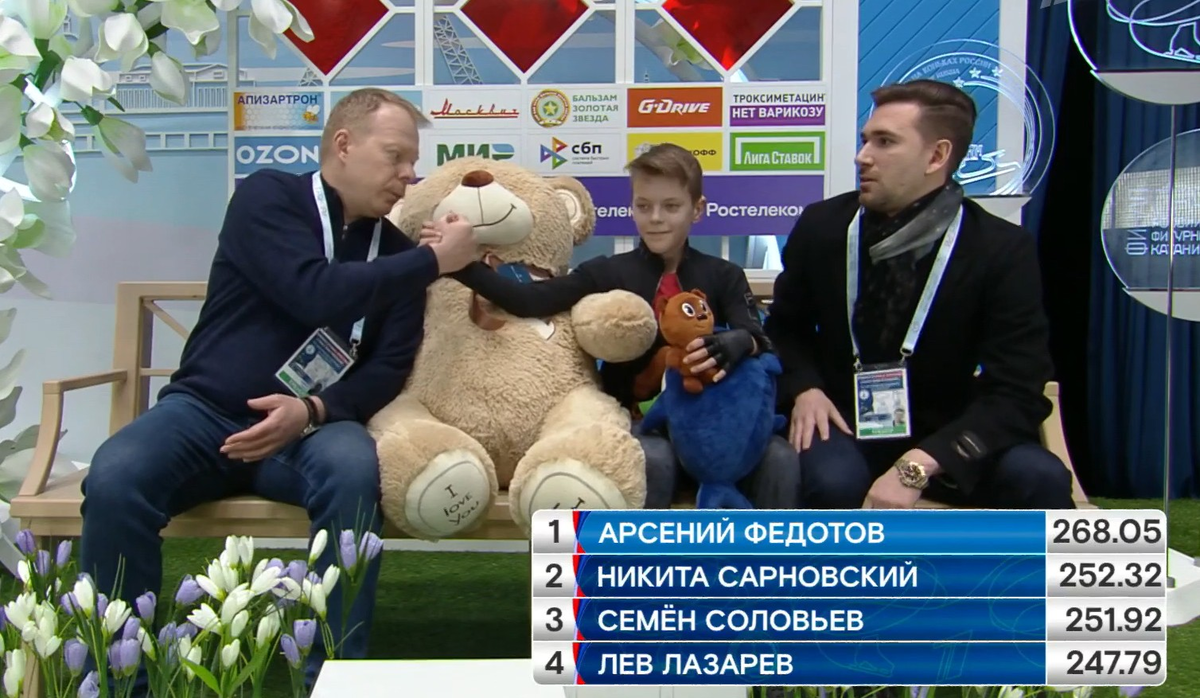Ох, какими же напряженными вышли соревнования юношей в ПП в Финале Гран-При России. Все-таки в этом сезоне мужская часть соревнований одна из самых эмоциональных и непредсказуемых. Но слава Богу, что касается первого места здесь нет неожиданностей. Победителем соревнований стал Арсений Федотов, воспитанник тренерского штаба Тутберидзе. Для меня Арсений - это чемпион по характеру. Вы только посмотрите, он знал результаты предыдущих фигуристов, знал, что Никита Сарновский удачно исполнил три четверных и два 3А. Но не дрогнул. Даже после нелепого падения на 4С, он не отключил голову, а по ходу программы перекроил ее и добавил еще один 3А. Взрослые спортсмены иногда начинают рассыпаться, а тут юниор) Я уже молчу про его внутреннее обаяние, пластичность, эмоциональность. Вот смотришь на Арсения и невозможно сдержать улыбку, что-то доброе, искреннее, ребяческое светится в его огромных глазах. И еще уважение к окружающим, понимание, что он талант, но при этом отсутствие высокомерия. Да в ц