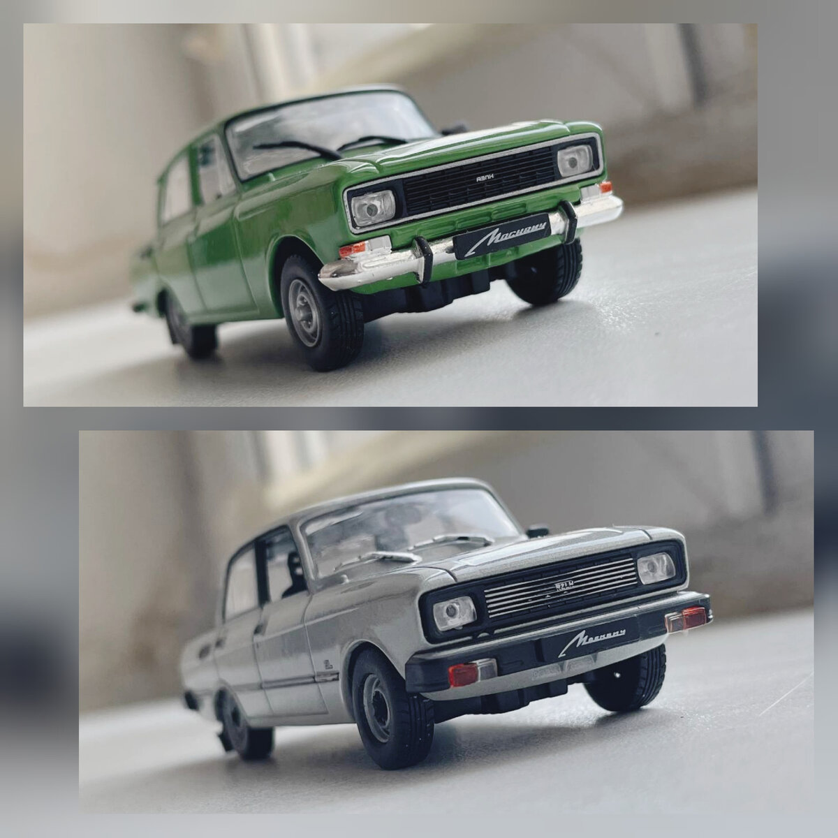 Перед прочтением статьи советуем нажать на иконку нашего канала и посмотреть другие статьи. Мы запустили наш первый проект по покраске Волги ГАЗ-21 и планируем публиковать этапы работы над ним здесь и в телеграм канале KraskaGuys каждую неделю. В промежутках между выпусками по проекту будем писать статьи о моделях легендарных советских автомобилей. Загляните на канал, возможно, именно вам будет интересно😉 Здравствуйте уважаемые подписчики! Сегодня на примере двух моделей журнальной серии «Автолегенды СССР» мы рассмотрим и расскажем про отличия между зеленым Москвичом 2140, достаточно распространенным автомобилем на советских дорогах, и его «люксовой» поздней версией 2140 SL серого цвета. Москвич 2140 встал на конвейер АЗЛК в 1975 году. Отдавая дань моде, советские конструкторы не поскупились на роскошный хром экстерьера, в частности на полностью хромированные окантовки дверей и дверные ручки: 2140 SL же появился уже в 1980. Тогда автомобиль пытались осовременить, посему те же элементы