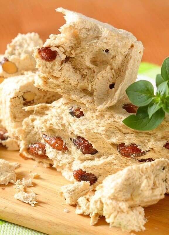 Халва узбекская молочная – это натуральное сладкое блюдо, в состав которого входят исключительно экологически чистые продукты. И несмотря на ее насыщенный сладкий вкус – в ней отсутствуют сахар. Сладость достигается добавлением меда. Помимо него в состав входят: семена подсолнечника; вода; масло орехов; крошка фисташек; сухое молоко; ванилин. Производится молочная халва в Узбекистане по традиционным рецептам, передаваемым на протяжении сотен лет. Ее структура отличается плотностью, относительной твердостью и однородностью текстуры. Обволакивающий сладкий вкус сочетает в себе сливочную ноту и ореховое послевкусие.