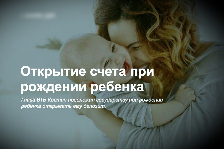 Глава ВТБ Костин предложил государству при рождении ребенка открывать ему депозит. 📌Открытие счета для ребенка в момент его рождения - это инновационная идея, которую недавно предложил глава ВТБ Костин. Этот счет будет управляться родителями и может быть использован для накопления денег на определенные цели, такие как образование и медицинские расходы. Государство могло бы вносить определенную сумму при рождении ребенка, а затем пополнять ее вместе с родителями.