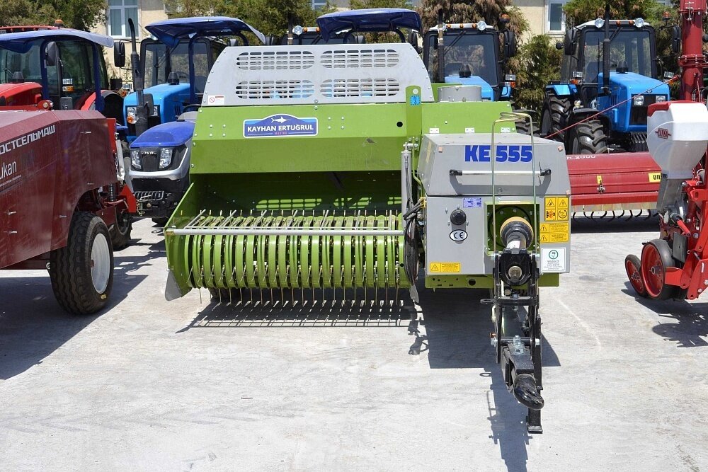 Хранение сена в прямоугольных тюках подойдет для небольших хозяйств. Также тюкование сена оптимальный выбор при заготовлении сена на продажу. Тюки занимают меньше места при складировании, их удобнее и проще грузить и перевозить: за один раз тюков можно перевезти в 1,5 раза больше, чм рулонов. Также из тюков можно строить временные заграждения для скота. Тюки можно разгружать и переносить вручную, их проще штабелировать и вынимать из хранилища. При небольшом поголовье тюк сена может быть использован за один раз, это значительно упрощает расчет дозировки корма. Для формирования тюка из скошенных материалов необходим тюковой пресс-подборщик. Эта сельскохозяйственная машина формирует из сена плотный прямоугольник весом около 25-30 килограмм. Равномерность прессования тюка повышает срок хранения сена и помогает сохранить питательные свойства корма. Тюковой пресс-подборщик KE 555 турецкого производителя Kayhan Ertugrul создан для формирования прямоугольных тюков сена или соломы. Тюковой пре