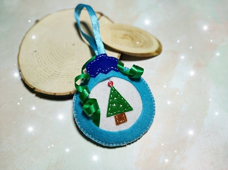 Чтобы сделать наряд новогодней елочки более оригинальным и изящным, многие прибегают к рукоделию. Украшения, созданные своими руками, получатся неповторимыми. Они смогут подарить праздничное настроение всей семье. Для шитья понадобятся: Рисуем шаблон на бумаге или на картоне, как обычно. Затем вырезаем верхнюю часть и обводим ее на синем фетре. Вырезаем деталь и повторяем еще раз, так как таких деталей потребуется 2 штуки.