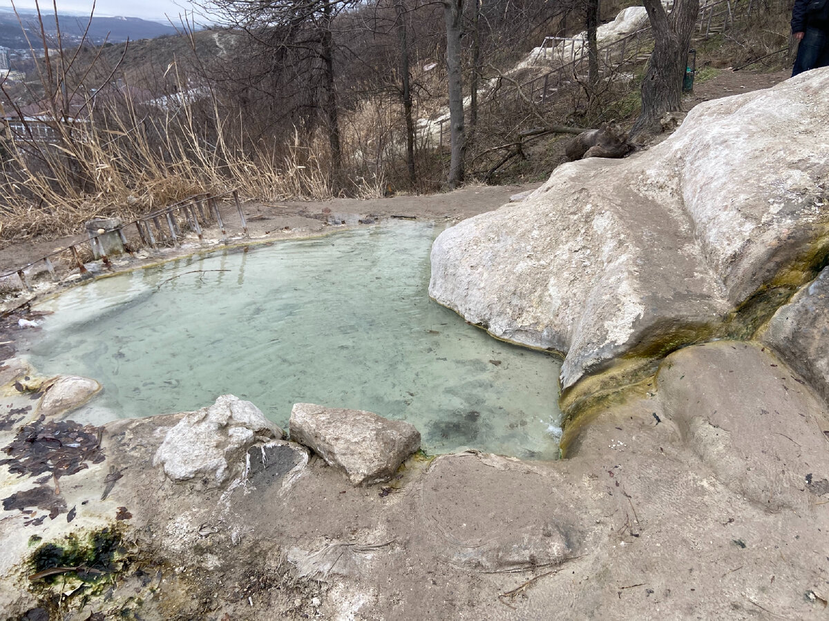На склоне горы Машук, недалеко от озёра Провал, находятся природные, образованные стекающей сероводородной водой, углубления, ванны. Точнее даже каскад ванн, соединённых протоками. О пользе такой воды известно давно и всегда были и есть желающие бесплатно оздоровиться. Мы были в Пятигорске в феврале, поэтом в ваннах никого не было, только такие же любопытные туристы. Но в тёплое время годы, говорят, здесь аншлаг. Такое необычное название ванн-говорящее. В 19 веке такие природные бассейны были прекрасной альтернативной оборудованным платным ваннам, поэтому сюда стекалось много народа, ну, и название они получили соответсвующее -народные. Но местных властей не устраивало, что многие купались голышом и все вместе, поэтому ванны получили ещё и другое название -бесстыжие. В 1914 году власти решили построить бесплатные оборудованные ванны, где процедуры принимали под наблюдением врачей и после их осмотра. Но местных жителей и туристов это тоже не устроило, так как надо было ждать очереди, д