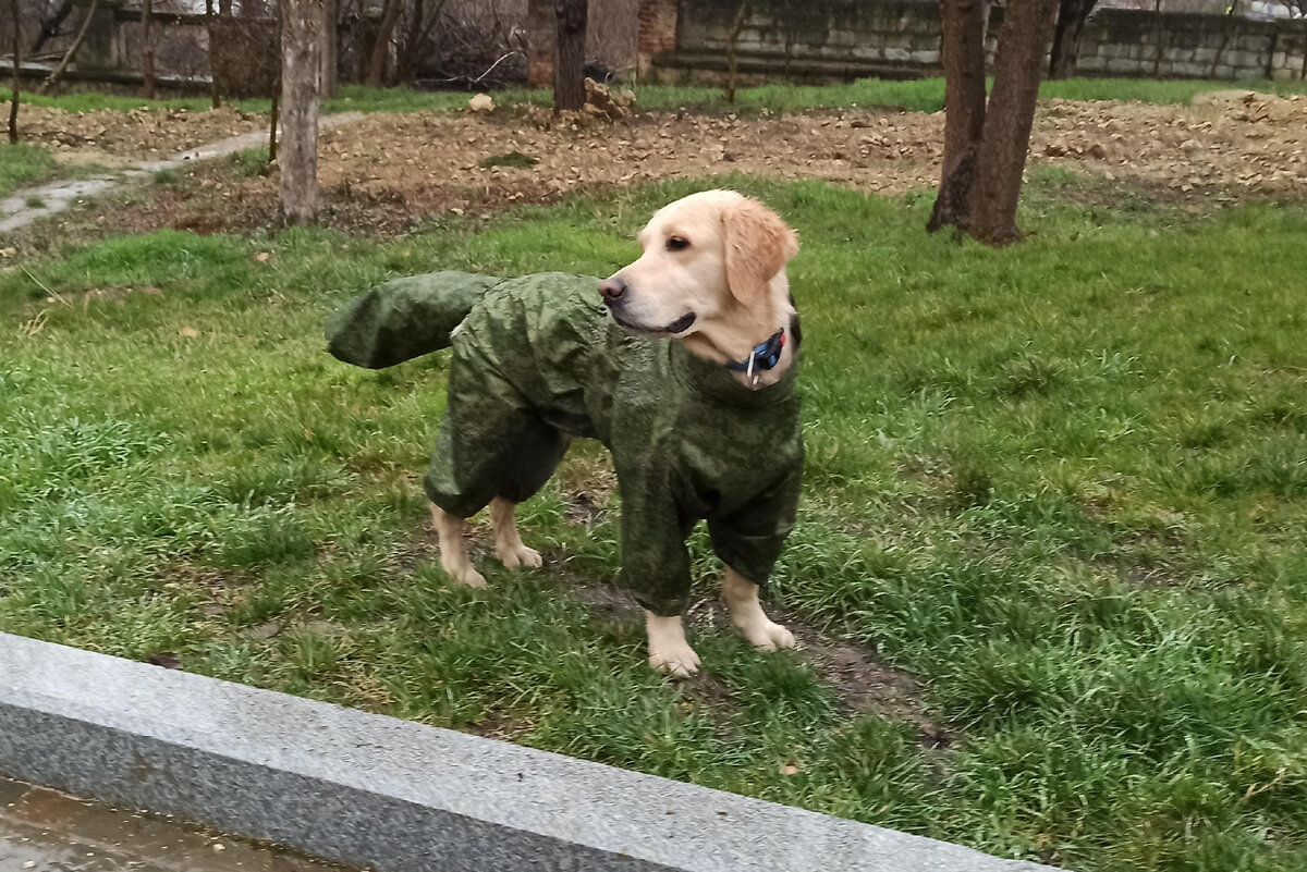 Ну вот, наконец-то комбинезон для Кубы сшит. Старый был уже совсем ветхий, потому что ткань была "тентовая", и после стирки она стала обычной тряпочкой, хоть и выглядела прилично.