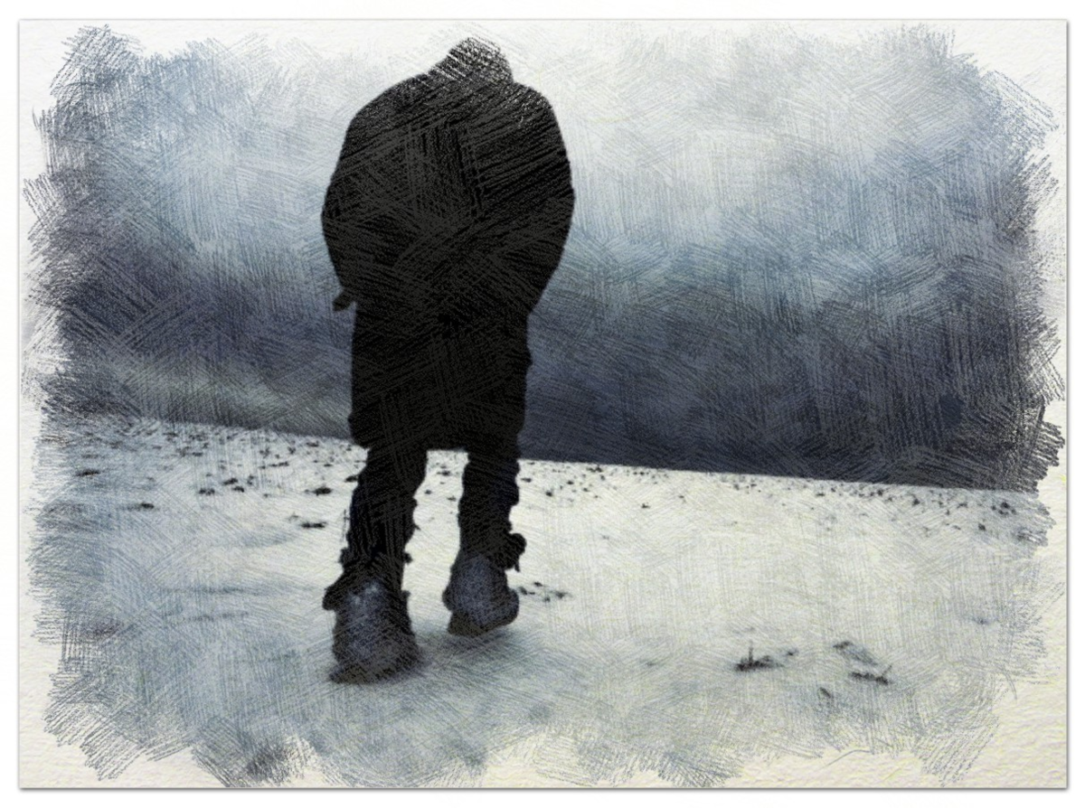 Сегодня выдался тёплый зимний день. Ребята долго катались с горки. Домой идти не хотелось. Да и не замёрзли совсем. У Коли возникла идея сходить на заброшенный завод. Двое мальчишек поддержали его. Домой ушла только девочка Надя. Она устала, да и слушалась родителей. Те запрещали ходить неизвестно куда. Пробираться по сугробам было тяжело. Но вот и развалины старого предприятия. Ребята принялись изучать их с азартом молодости. «Привет, молодежь», – перед ними стоял седой мужчина. «Здравствуйте», – ответили дети. «Не замёрзли?» – поинтересовался мужчина. «Да, немного есть. Сейчас домой пойдём», – ответил Никита. «А пошли ко мне. Я сторож. Расскажу вам историю здешних мест», – предложил незнакомец. Ребята радостно согласились. Все двинулись в путь. И вдруг один из детей по имени Лёша заметил, что мужчина не оставляет следов. Каким надо быть лёгким, чтобы не проваливаться в снег. Если даже они проминают снежный наст. Лёшка попытался привлечь внимание к этому факту двух других мальчишек. О
