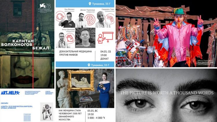 Редакция Armenia Today собрала самые интересные культурные события, которые пройдут в Ереване в эти выходные. Выбирайте, что нравится, и присоединяйтесь к нам! 1. В Ереване в Hagobian Gallery пройдет выставка картин художницы Дианы Даян The picture is worth a thousand word. Выставка откроется 3 марта в 18:30. 4 и 5 марта выставку можно посетить с 12:00 по 22:00. Выставка об эмоциональном состоянии человека и микромимике. Мероприятие будут сопровождать классические произведения известных композиторов. Вход свободный. 2. В кафе-библиотеке «Мирзоян» 4 марта в 15:00 пройдет благотворительный аукцион антивоенного искусства Art to Help. На аукционе представят живопись, графику, фотографии, арт-объекты и принты художников из Армении, Украины, Беларуси, Грузии и России. Стоимость билетов от 7 500 драм. Ведущий — стенд-ап артист Гарик Оганисян. Участники аукциона смогут не только купить предмет искусства, но и принять участие в обеспечении гуманитарных нужд Украины и Арцаха. Все вырученные сред